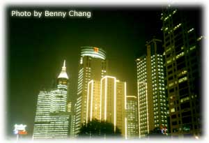由於近距離拍攝這些高聳入雲的地標技術上本就不易,加上又是夜景,我實在不願放過這難得的機會,因此就說服了中中,以十元一張的價格,分別以東方明珠和金茂大廈為背景拍了兩張5X7吋的照片,我和中中一人一份總共四十塊。拍了照片之後當場從相機螢幕上看,滿意之後才去沖印;貨到才付款,因此我並不擔心中間會出現什麼差錯。我算給中中聽:「十元一張相當於一塊兩毛五美金。如果在美國的話,自己買相紙用彩色噴墨印表機印一張這麼大的相片,本錢也差不多這個價錢;拿到外面去印可能更貴…」