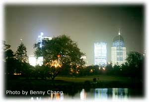 隨後我們步行到了上海市的中心地帶-人民公園。人民公園本身的水池、燈光搭配之下就相當出色;周邊燈火通明的上海大劇院、上海博物館、上海人民大廈以及城市規劃展示館等現代化大型建築更是爭奇鬥艷、各擅勝場。「上海博物館設計取中國傳統『天圓地方』理念,採取上圓下方的構型;上面的圓框則取材於『鼎』的把手。」「大劇院裡面有一個大型劇院可供戲劇音樂演出,兩個比較小的廳堂供比較小規模的表演。現在正在上演百老匯音樂劇『音樂之聲』(Sound