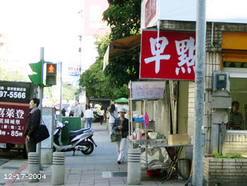 在杭州南路吃早點,因為太晚了,燒餅油條都沒了,只好叫飯糰和蛋餅,還有一碗豆漿。