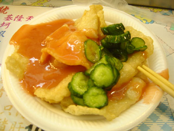 念念不忘的臭豆腐 (育兆攝,我的相機照例的又沒電了)