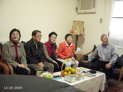 吳伯伯一家都很和善健談,吃飯氣氛非常愉快,吃飽飯後吳媽媽有事先離開,我和志彬去正義藥房買點胃腸藥才回去,因為志彬鬧肚子已經好幾天了。餘人回到我們家,爸爸拿出天韻的KTV來獻寶,大家唱得非常開心,吳仙燕(她的名字怎麼寫哩?誰教教我)也很高興,我們還用鋼琴伴奏唱了平安夜。
