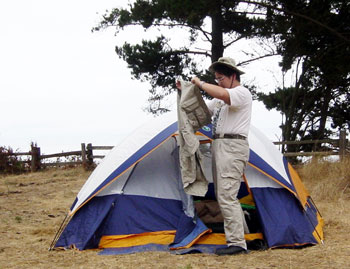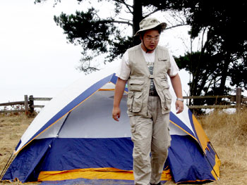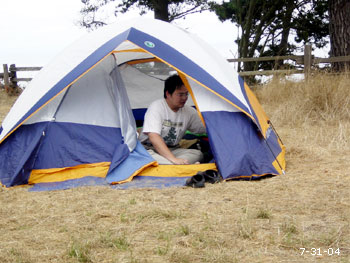 阿肥英勇玩飛盤留影 我們的營地就在後面的山坡上 |