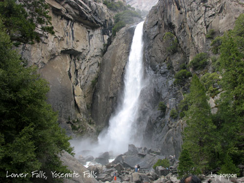 這是優勝美地三層瀑布中的最底層, 遠看只有短短一截, 走近一看原來這麼大... |
