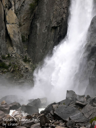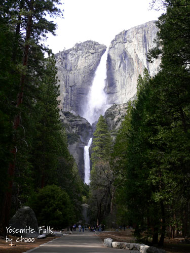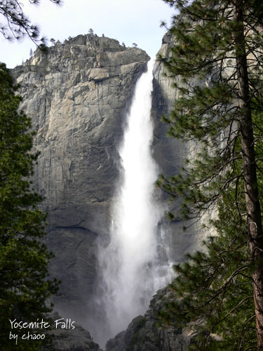 優勝美地瀑布,今天的水似乎比昨天要大。太陽又不見了.. 水越來越大.... 看起來有點可怕呢!