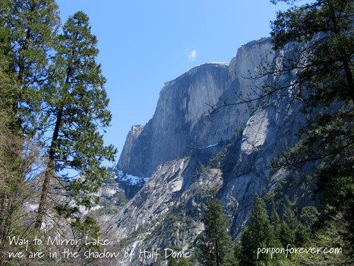 前往鏡子湖的路上, 抬頭便是Half Dome. |
